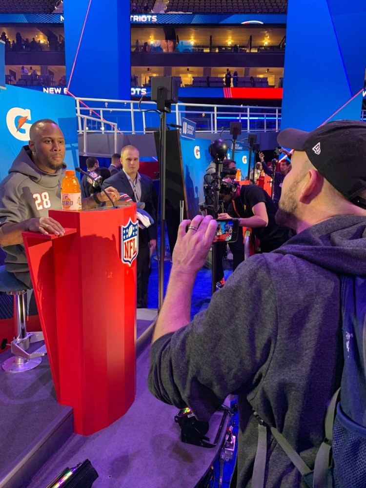 Since 2015, Kyle Belanger has worked alongside legendary sports radio producer Chris Visser, providing blanket coverage of the Super Bowl for countless national radio outlets from the world-famous Radio Row. Not only is this assignment central to Belanger’s own media career, but is also the cornerstone of so many vibrant and meaningful classroom experiences for his students.